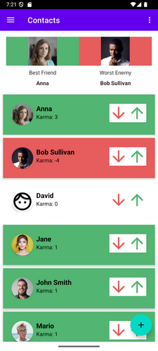 "Karma Tracker" is an Android app that helps you keep track of the good and bad things you and your contacts do for each other. It's designed to be a personal journal of your social interactions, allowing you to reflect on your relationships and the actions that shape them.